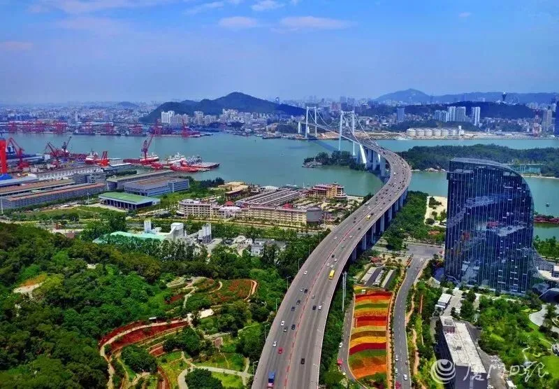 如今的海沧大桥沿线美景。(本报记者 王火炎 摄)