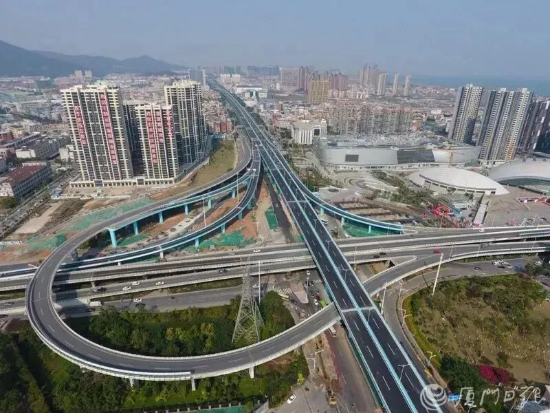 2017年,全线贯通后的同集路,成为同安与厦门岛联系的交通大动脉。(本报记者 王火炎 航拍器摄)