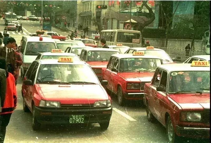 陈金发拍摄的上世纪80年代中期的的湖滨南路,整条路都是土路,各种车辆也少,绿化也只有路中间的隔离带,邮电大楼算是很显眼的高楼建筑了。