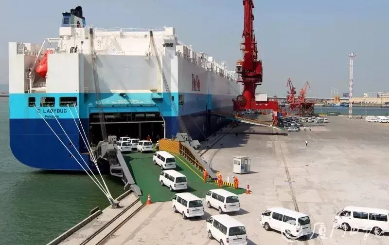 2011年7月23日,东渡港区迎来当时全球最大的汽车滚装船。(本报记者 郑晓东 摄)