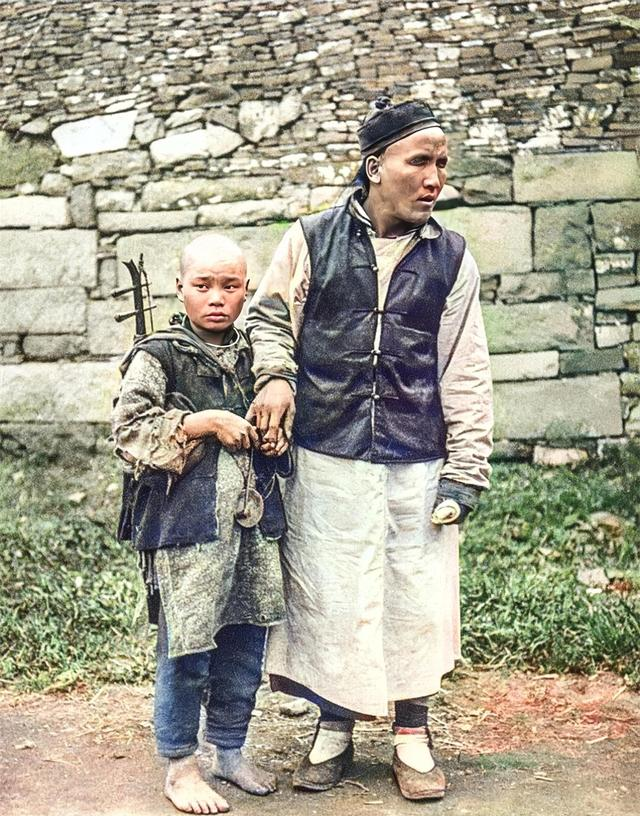 听我太姥爷说过,街上常有盲人卖艺或做点小买卖。盲人穿鞋穿袜,小徒弟却光着脚丫,冬天冻得直跳脚。别看盲人不识路,手上那门技艺可养活了一家老小。小徒弟跟着师傅,虽苦但有口饭吃。照片里盲人师傅端坐,旁边小助手却穿得单薄,脚上啥都没有。常有人感叹可怜,可那年月,能有师傅带,算是有路子的孩子。比起饿着肚子在街头讨饭,这已经算老天眷顾了。