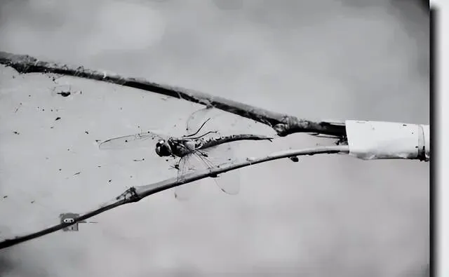 捉蜻蜓的工具也是自制的 , 竹竿子绑个三角形 , 缠上蜘蛛网 , 往蜻蜓身上一罩 , 百发百中!