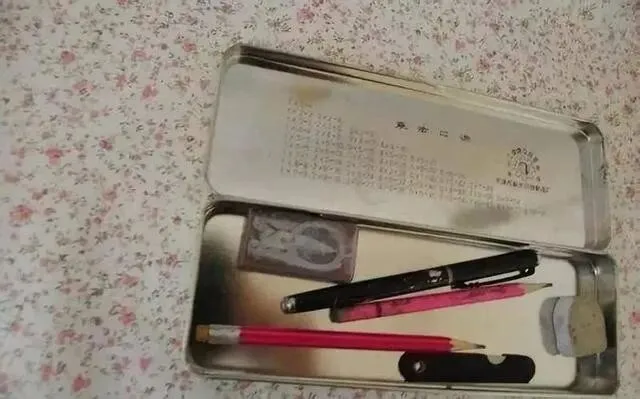 铁皮文具盒 , 里面那把折叠小剪子 , 是不是人手一个?盖子上印着乘法口诀 , 实用得很。