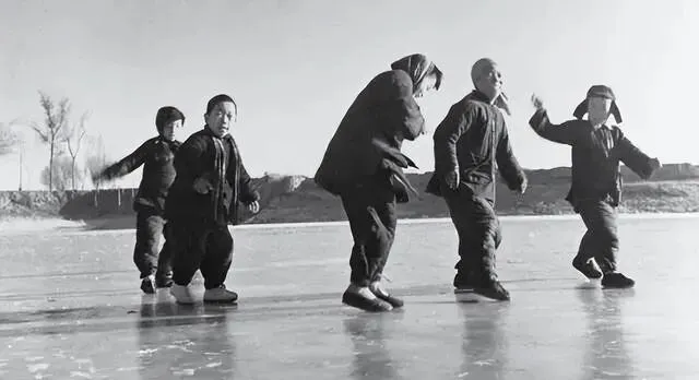 东北的孩子还能溜冰 , 冰面上滑来滑去 , 摔得屁股疼也不停。