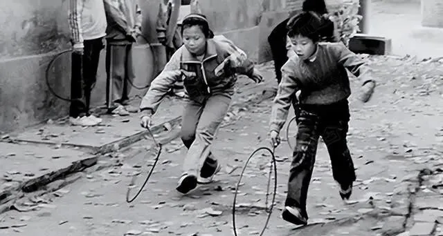 滚铁环 , 这个太经典了。 一根铁丝弯个钩 , 一个铁圈滚起来 , 能从村东头滚到村西头。