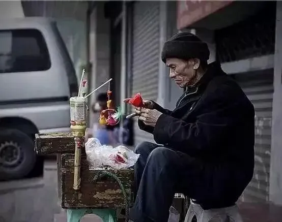 小时候最爱看这个 , 围着不肯走。 现在偶尔在景区能碰到 , 但真正会这手艺的 , 没几个了。