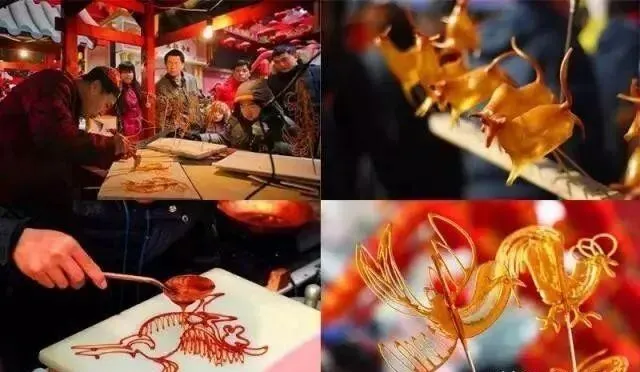 一块麦芽糖 , 高温融化 , 手口并用 , 几分钟就能吹出小动物、小人儿 , 活灵活现的。 小时候围着看 , 眼睛都不舍得眨。