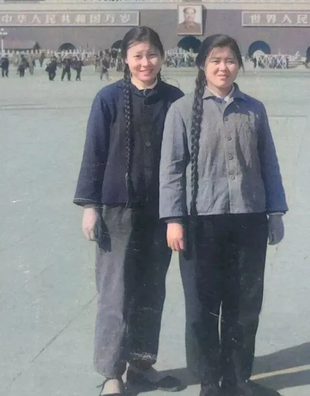 还有这张天安门前的合影 , 两位女知青 , 尼龙衣裤 , 素雅端庄。
