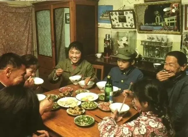 年夜饭 , 一家人围坐 , 好酒好菜。