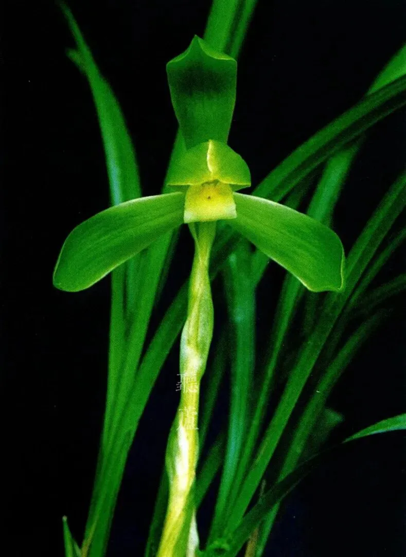 特征 三瓣阔长,收根放角,蚌壳捧,大圆舌,水白色,舌根基两侧缘有时偶缀浅绯红晕。由于此花色泽嫩翠、俏丽,花容又柔丽,故被视作为素荷瓣中名花。常有一葶二花开出。