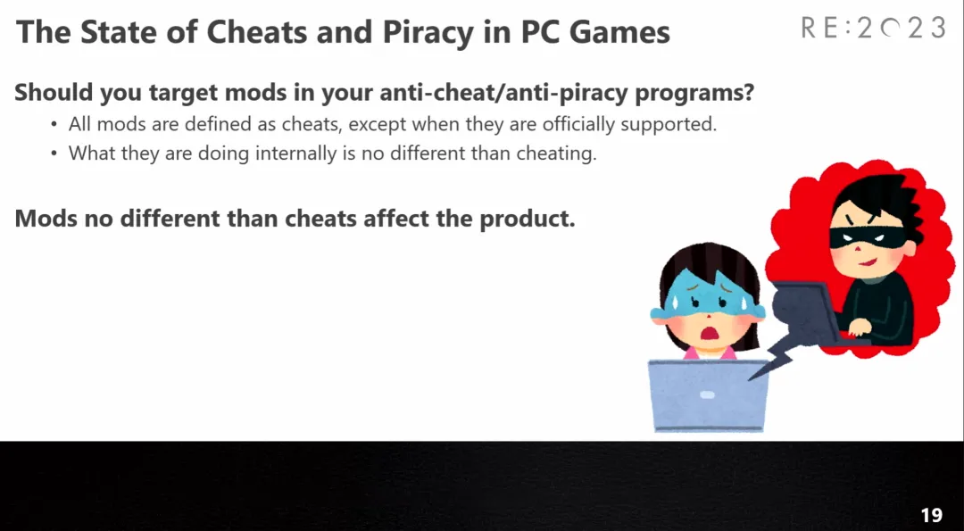 模组是电脑游戏不可分割的一部分,但出于反作弊和反盗版的目的,所有未受官方支持的模组,“都被定义为作弊”。因为他们无法把未受支持的模组和作弊工具区分开来。