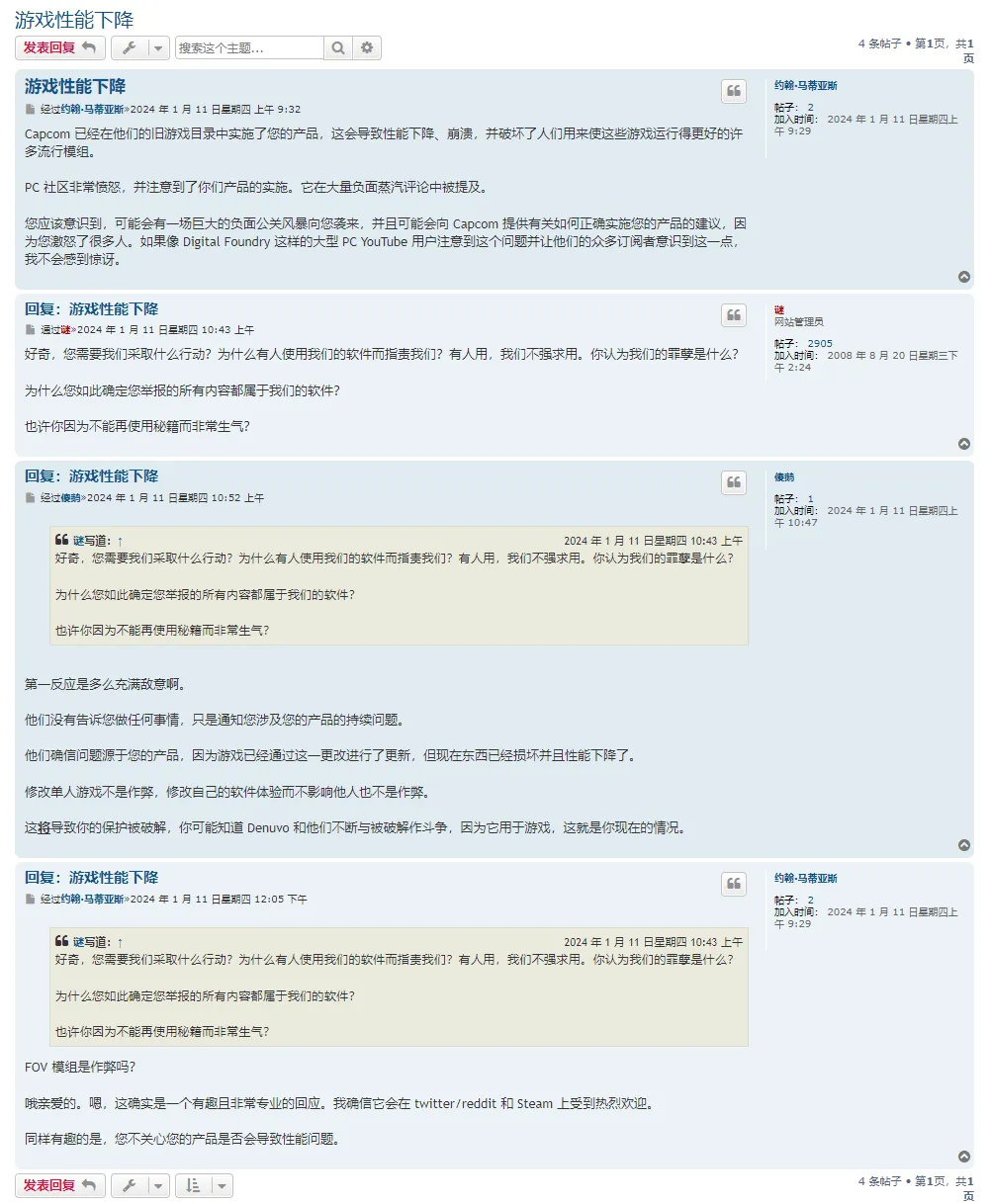 原帖很快遭到删除,Enigma的代表通过外媒PC Gamer发布了更正式的声明,像是在将责任一并推给卡普空:“我们不控制哪些软件受到保护,我们不控制如何保护它,我们不知道所使用的保护选项……我们甚至不知道哪些软件受到保护,以及为什么受到保护。”