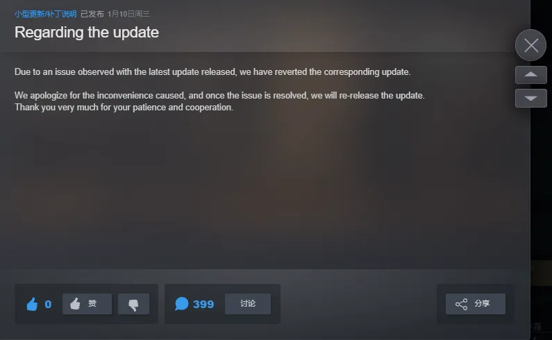 第二天,卡普空通过Steam发布了一份简短声明,解释说最近的一次更新已经回滚,对造成的不便表示道歉,但是“一旦问题得到解决,我们会重新发布更新”。这样的回复并无悔改之意,更不可能平息玩家们的怒火和差评轰炸。