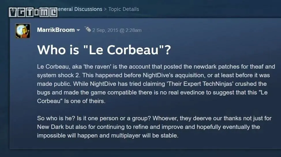 即便后来斯蒂芬自己拿到了底层代码,能够对《网络奇兵2》进行官方修复,这个神秘的“Le Corbeau”也依然在为其免费提供补丁。倒是为游戏又增添了一丝奇妙的神秘色彩。