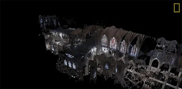 目前塔隆教授已经去世,他生前称,借助测量扫描仪,每一次测量都用一个色点表示,累积起来就形成了一幅大教堂的三维图像,扫描的精确度在5毫米以内。塔隆教授从大教堂内外的50多个地点进行了扫描,收集了超过10亿个数据点。