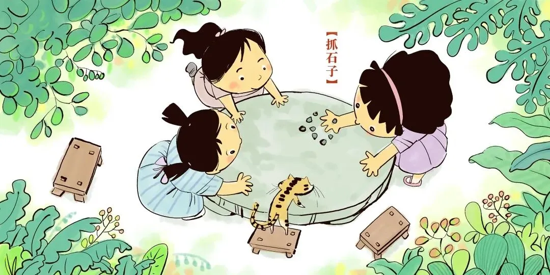 抓石子,很多地方也叫歘羊拐,现在的小朋友可能比较陌生了,但是爸爸妈妈爷爷奶奶小时候可是经常玩这个游戏。选五个小而圆的石子摆地上,一个抛在空中,马上用手抓取地上的几个,然后接住空中的那个。鞠萍姐姐和杜悦姐姐小时候都爱玩抓石子,杜悦姐姐觉得这个游戏可以锻炼手眼协调能力,你们觉得呢?