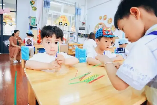 游戏为两人或三人一组,每位幼儿手中有若干个三角、四角,双方石头剪刀布的形式,赢的一方先打。