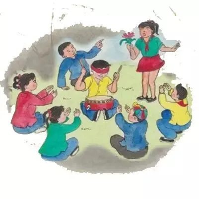 十几人或几十人围成圆圈坐下,其中一人拿花(可用手帕或小玩偶代替),一人蒙眼或背着大家击鼓,鼓响传花,鼓停花止,花在谁的手中,谁就表演一个短小节目。
