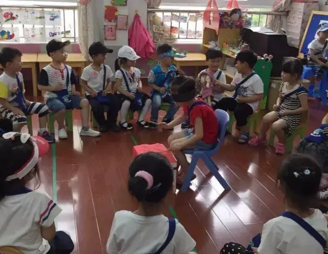 参与游戏的多个人围成圆圈蹲下 ,一人拿着手绢绕外圈走,蹲着的人开始唱歌“丢,丢,丢手绢,轻轻地放在小朋友的后面,大家不要告诉他,快点快点抓住他,快点快点抓住他。”