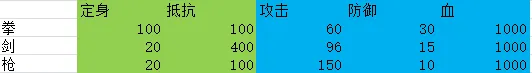 从上图可以看出,攻速越来越慢,恢复越来越高,躲闪越来越高,攻击力越来越高,防御力越来越低。
