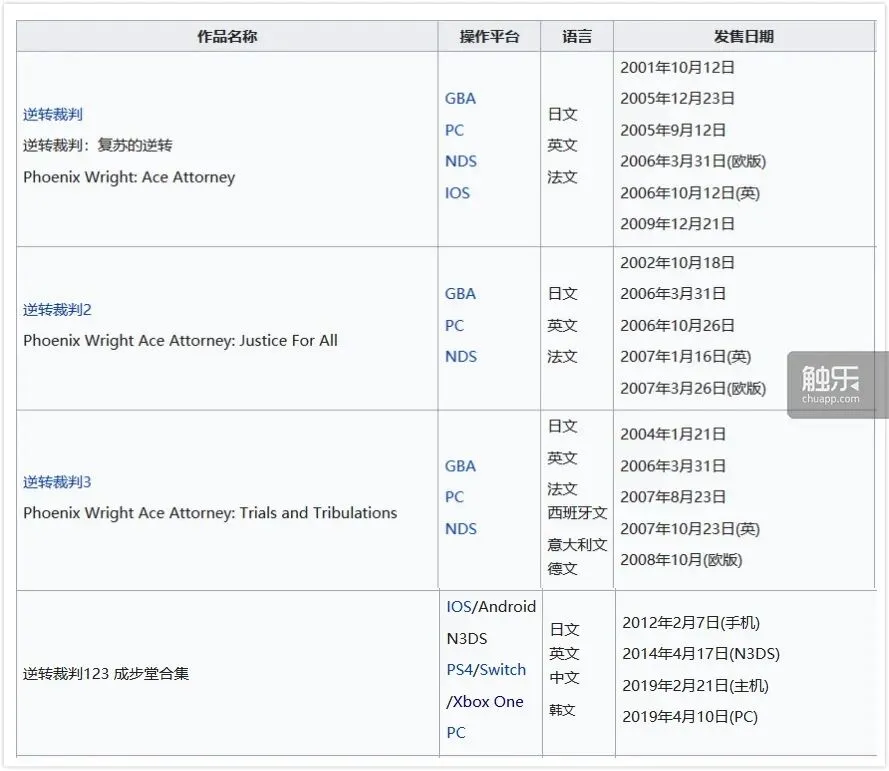 如果对“逆转裁判”的冷饭炒得有多么凶猛没有一个直观印象的话,看看这张图或许会比较明了——光是系列的前3部作品就有16个发售日期!
