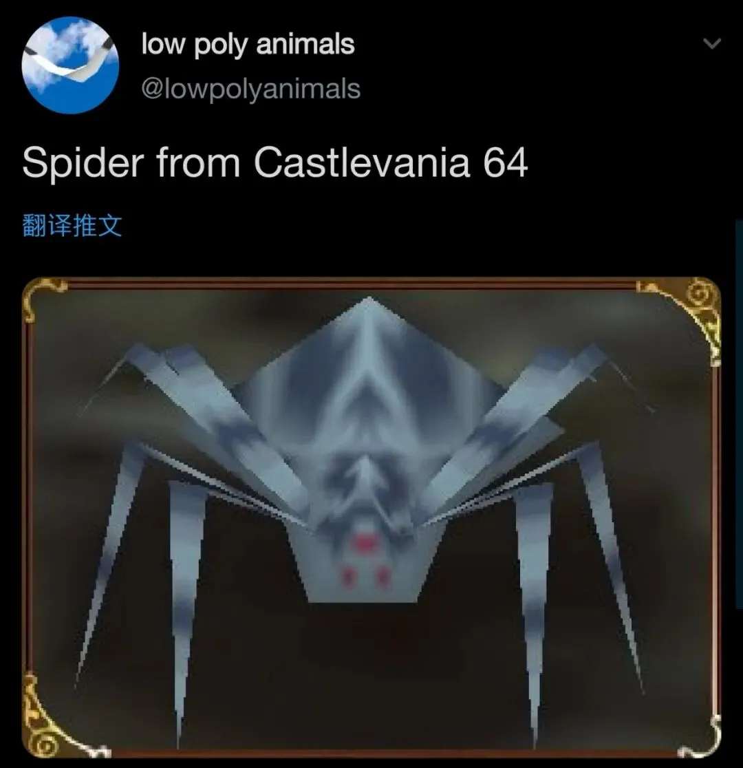 这个号的内容主要集中在一些经典游戏中,比如《恶魔城64》中像折纸艺术一样的蜘蛛。