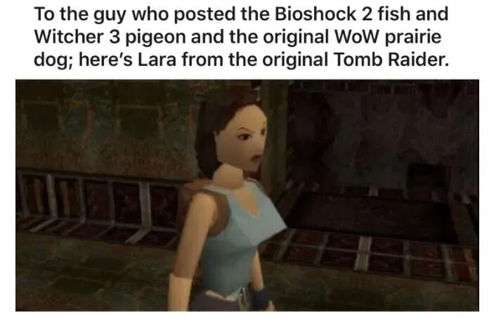 老《古墓丽影》里的劳拉在构图上可能比《巫师3》的鸽子更加抽象。