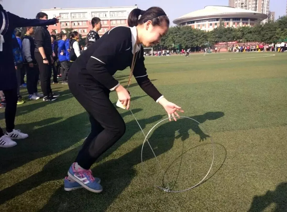 重庆外国语学校从拓宽体育校本课程、弘扬民族传统体育文化、锻炼学生体质的目标出发,将滚铁环纳入体育校本课程,在足球、排球、篮球、接力等项目之后又多一个“新”的项目,旨在寓教于乐,让学生在实践活动中成长。
