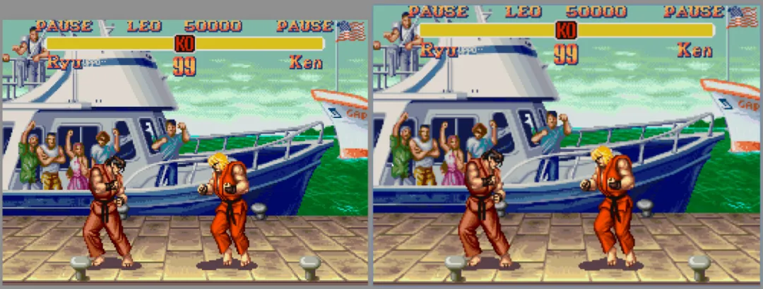 软件需要先以窗口化模式运行,拿一款老游戏——超级街霸2来演示一下,即使把软件全屏,在两边也有空出来的边框。
