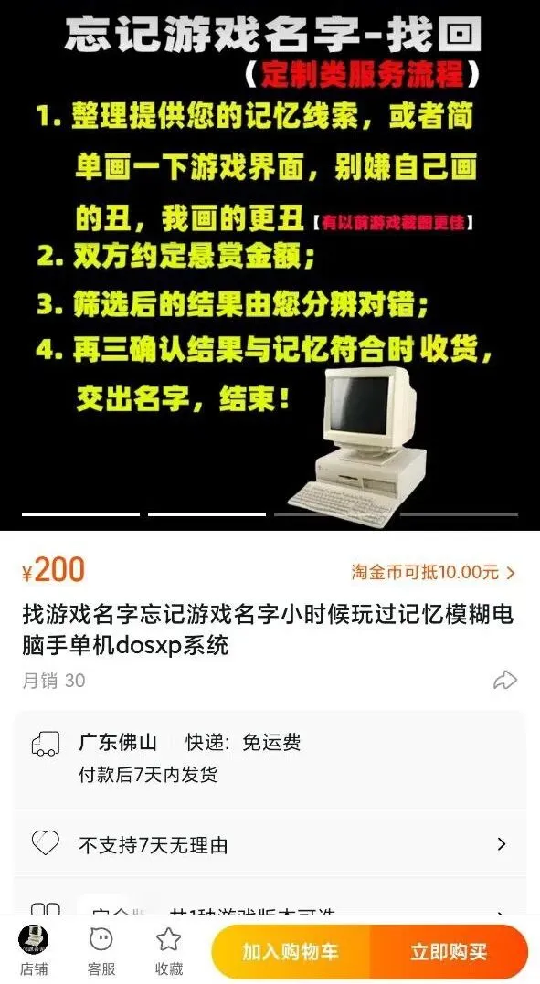 在淘宝上,就专门有卖家根据客户的描述找出游戏,但收费可不低。