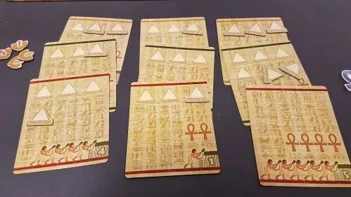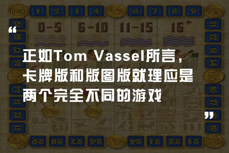 虽然去掉了绝大部分元素,但金字塔的建造费用却完美沿袭了版图版中的等差数列设计。也正是因为金字塔在建造阶段的独树一帜,直接决定了卡牌版中的得分手段中,金字塔会是最为重要的一个。加上金字塔保留的行省覆盖机制,如果在初期就建立起优势,会直接收获3个时期的得分收益,这在游戏中尤为重要。