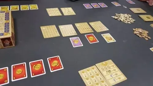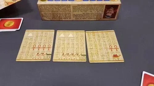 但由这一点考虑,同样也会为游戏衍生出更多的战术。从最基本的得分方式着手,每回合平衡自己的三个行省中金字塔的数量,而这一点是通过对于手牌中金钱卡的管理来实现的。