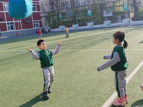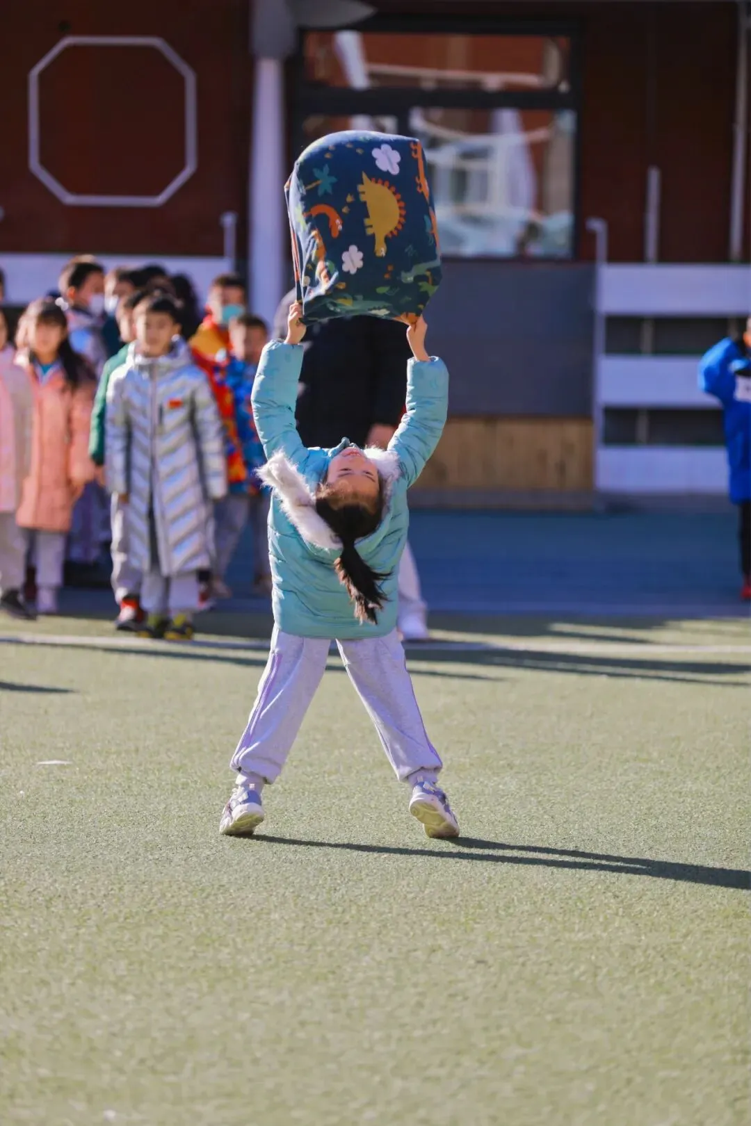 成功拿起沙包的同学迫不及待的将沙包丢到了自己喜欢的数字上,一蹦一跳,一来一回,笑声洒在路上,数字背后的古诗文更是难不倒他们!通过后的他们手拉手齐齐奔向下一个目标。