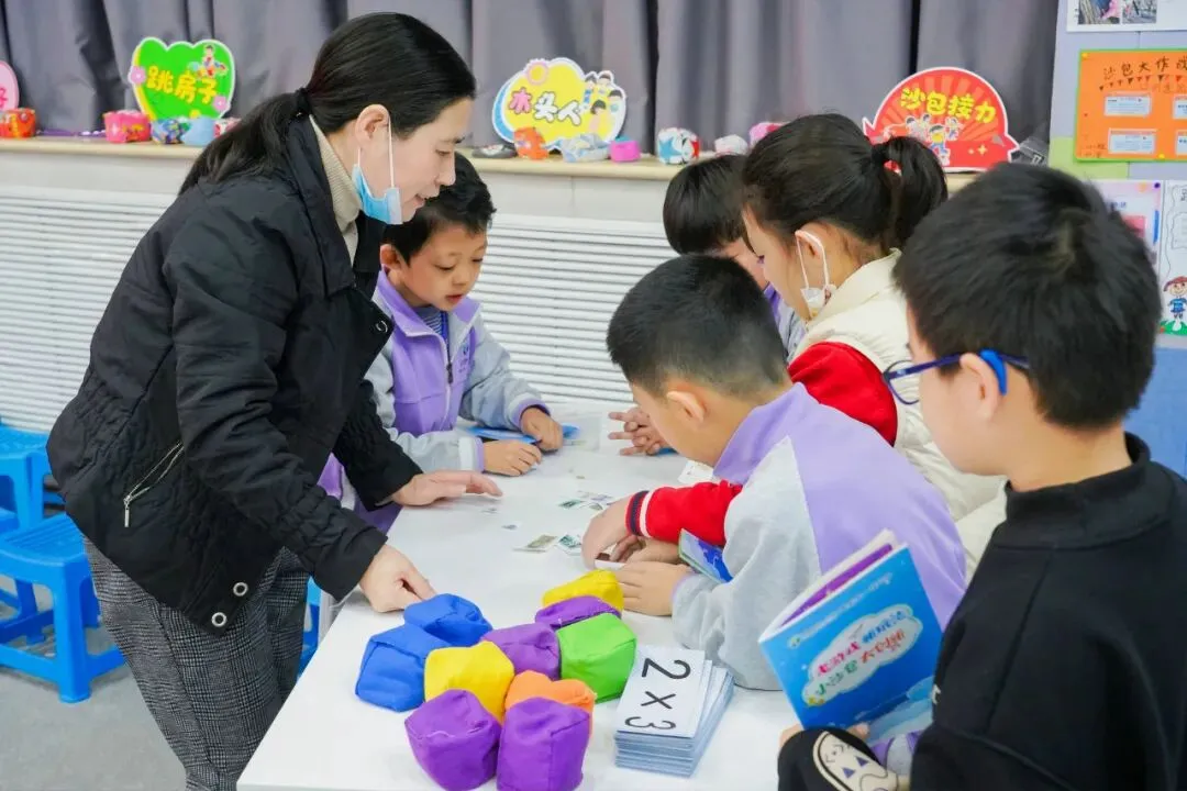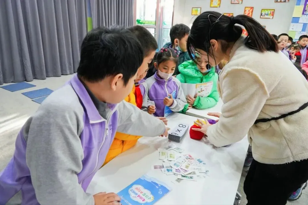 快看!一年级的小朋友们正排着队,拿着跳房子游戏的通行证——“的”字词组大作战,思索时紧皱的眉头,补全后展露的笑颜是语文场地上的一景。