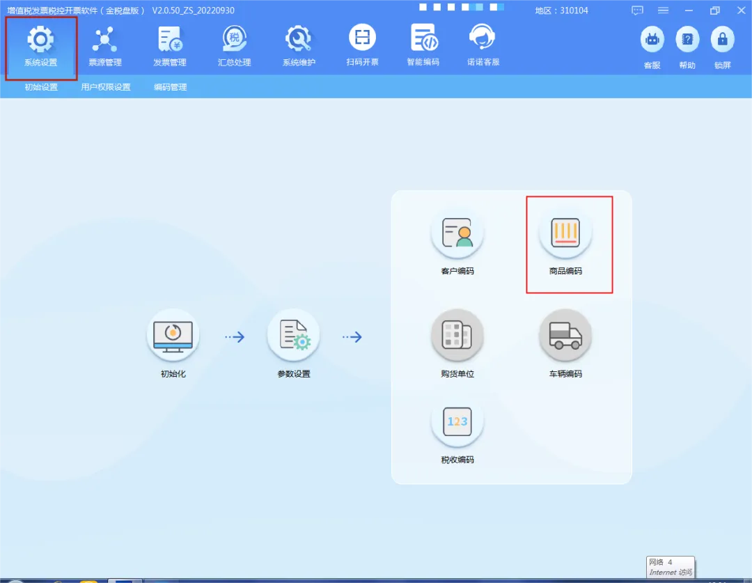 1.登录增值税发票开票软件-系统设置-商品编码。