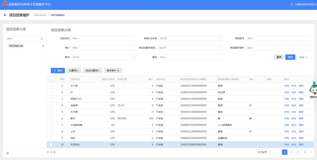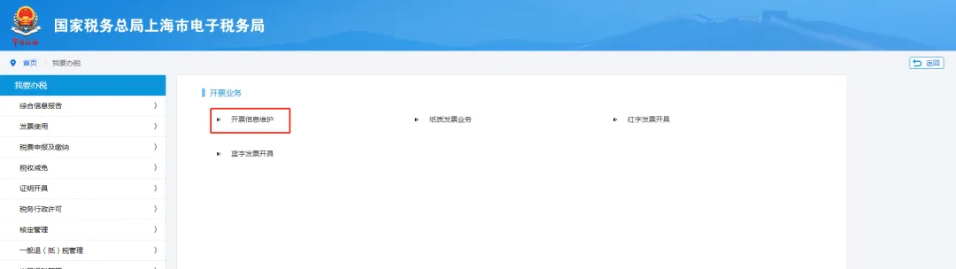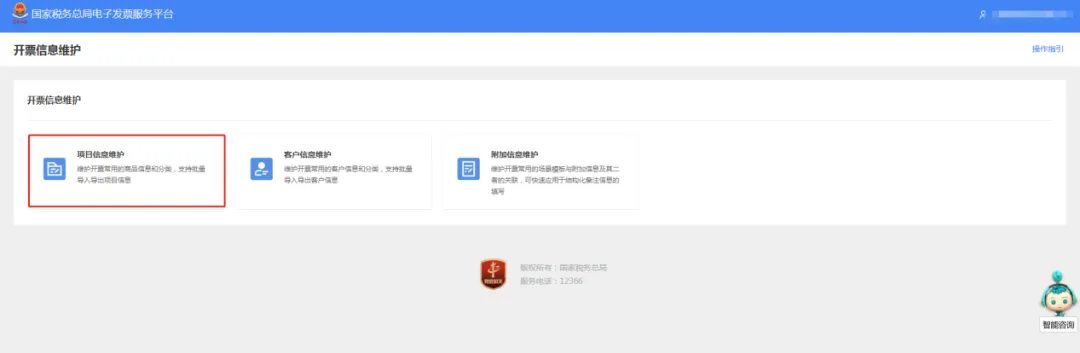相关路径:我要办税-开票业务-开票信息维护-项目信息维护