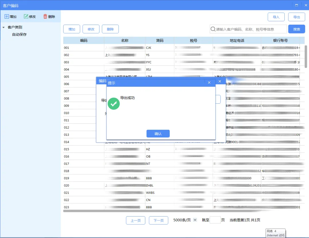 4.文件导入成功后点击“保存”,即完成客户信息维护。同时支持逐条信息的“详情、修改、删除”操作。