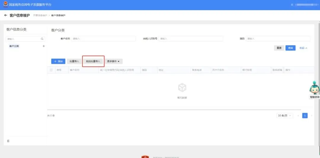相关路径:我要办税-开票业务-开票信息维护-客户信息维护