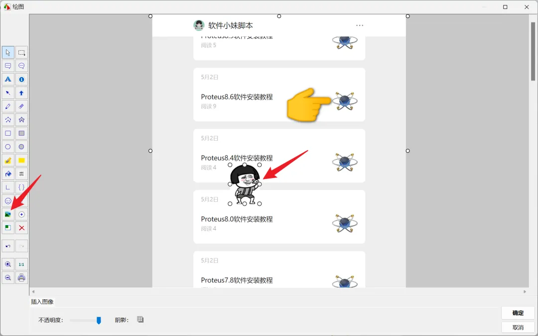 插入图片:软件还可以在已截图的界面中插入图片,点击功能后选择图片,然后点击图片的任意位置即可插入刚选择好的图片。