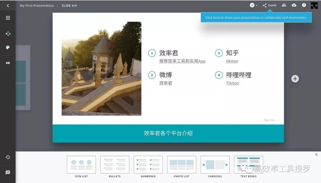 用它可以轻松制作出很炫酷的PPT。它上面内含了多种PPT模板,比如说你创建列表创建图标,创建图片。