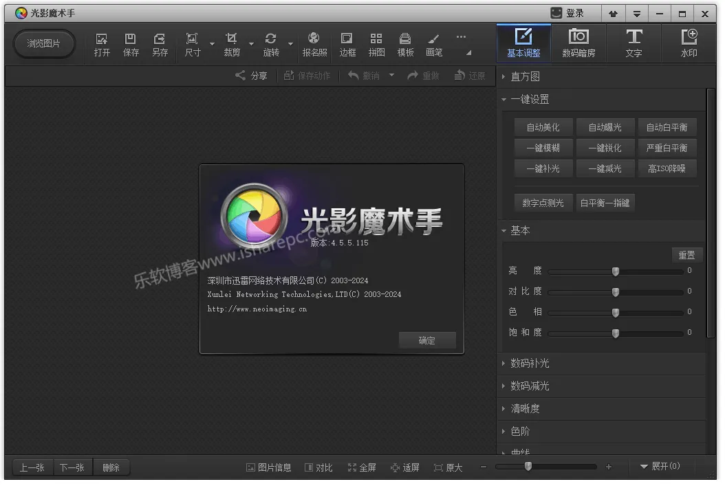 作为一个图像处理工具,简单的基本的图像调整,比如自动曝光、数码补光、白平衡、亮度对比度、饱和度、色阶、曲线、色彩平衡等一系列丰富的调图参数等,光影魔术手可谓一应俱全。