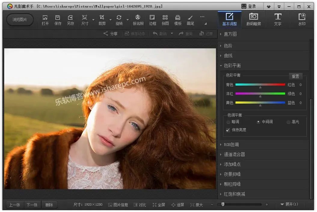比如色彩平衡,可以调整图像的整体色调或色温,可以使图像看起来更温暖(偏黄或红)或更冷(偏蓝)等。