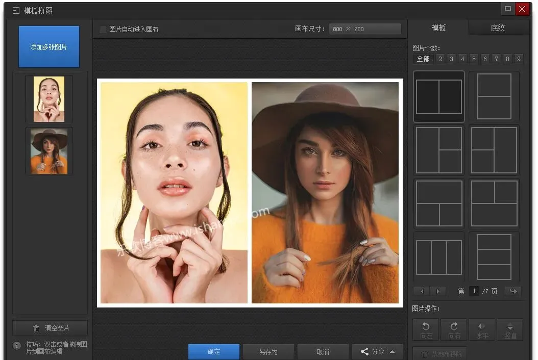 拼图功能和光影魔术手差不多,都支持自由拼图、模板拼图,效果也非常不错。阿刚这里就不多说了
