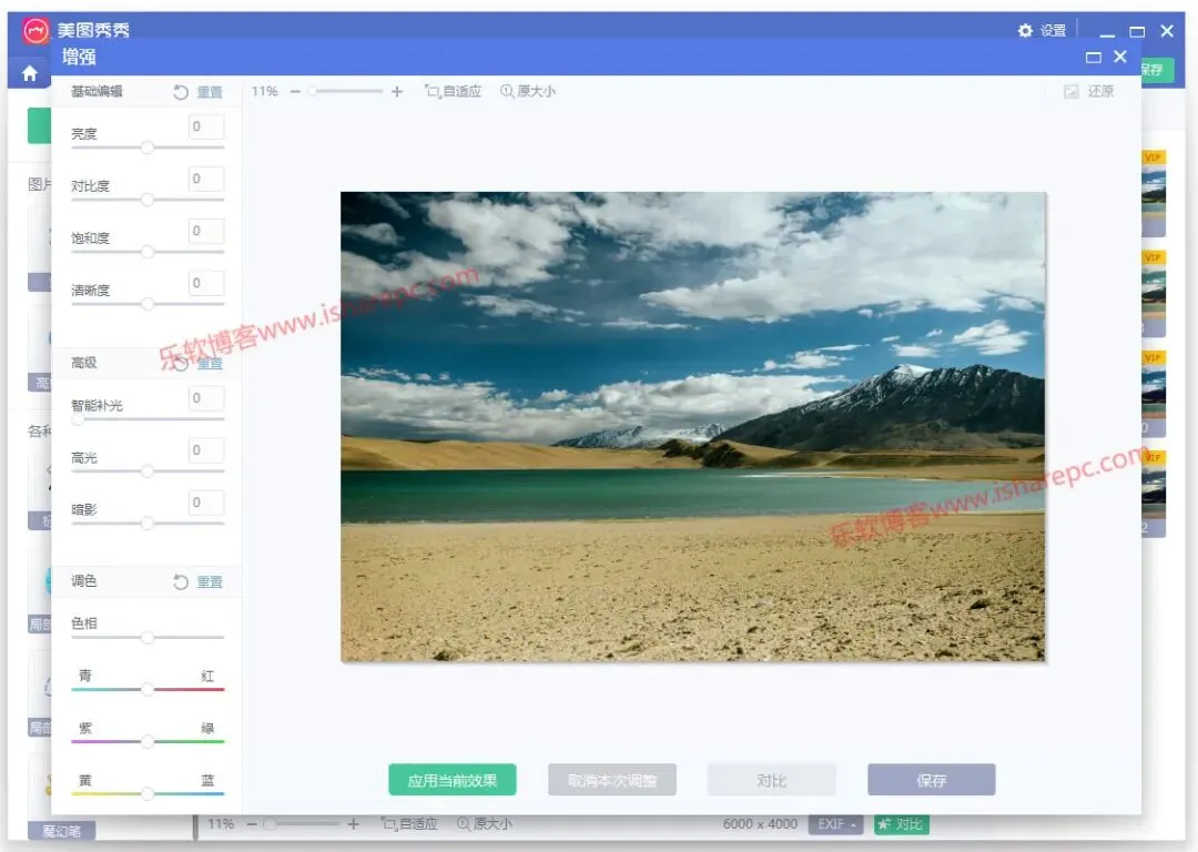 美图秀秀专注于图像美化,它的基本功能,主要是调节图像,包括图像的色彩平衡、饱和度、亮度等调整项,是图像处理中最常见的一些参数,使用也很简单,一般直接拖动滑块调整即可,而且美图秀秀的处理速度非常快,基本能做到实时预览。