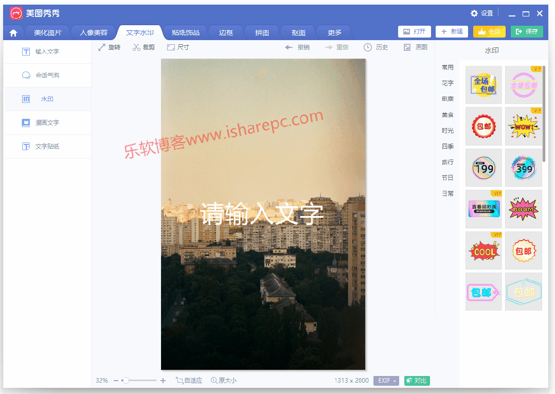 其他的小工具,主要是剪裁、拼图、文字、边框和水印