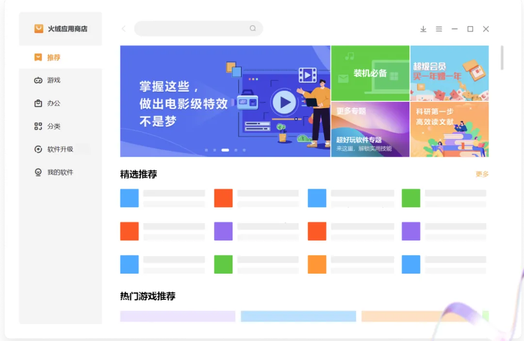 火绒应用商店是一款特别简洁的Windows 应用商店。它好像是基于联想应用商店来制作的。