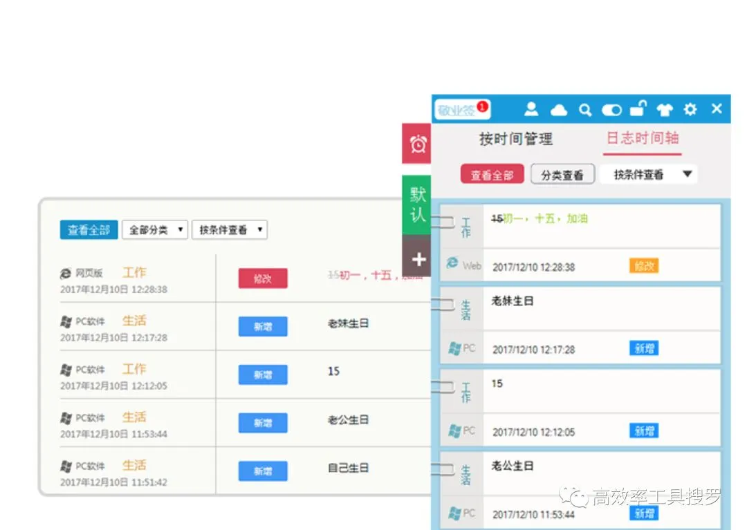 还可以设置分类,以时间轴显示,同时还有多人协同功能。
