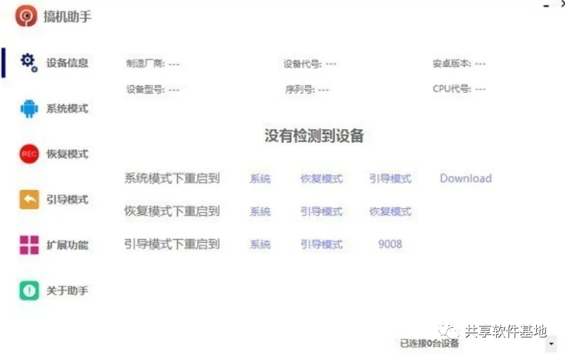 3.打开软件,等待检测设备,设备检测成功后软件会自动判断您的设备处于何种模式。
