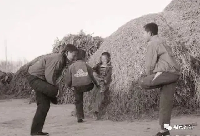 图为80年代农村孩子在玩耍,这个游戏是那个年代孩子最爱玩的。