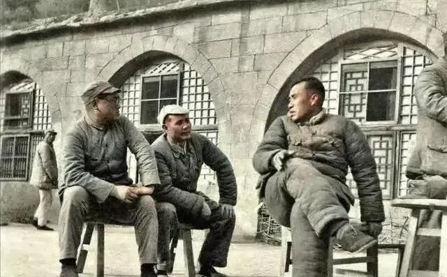粗布军装 , 没有肩章闪闪发亮 , 更没有精致的妆容 , 就是几个中年人在认真讨论事情。